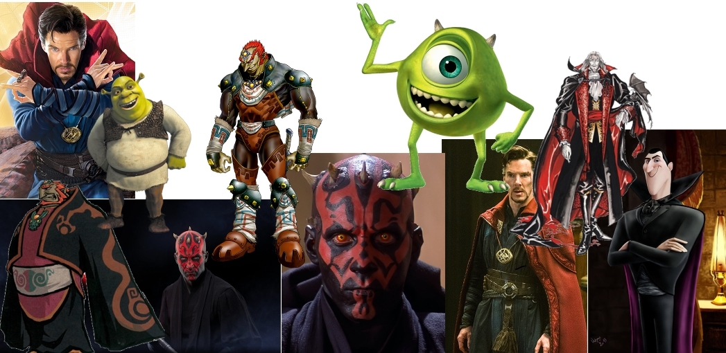 For this moodboard, I have included many characters which I had in my head when initially designing this character. Mike Wazowski from Monsters Inc. and the many different interpretations of Bram Stoker’s Dracula such as the Castlevania and Hotel Transylvania versions are the most obvious influences in my opinion. I focused a lot on a black and red colour scheme for the character’s clothes which can be seen through characters like Darth Maul from Star Wars, the aforementioned Dracula and Ganondorf from The Legend of Zelda. For the face I went with a green colour scheme, with clear influence from Mike Wazowski as well as the cyclops from Greek mythology. Some other charaters I included in this moodboard were Shrek, who was a character I initially had in my mind when drawing the character’s head, and Dr. Strange who’s influence comes through in the medallion that my character is wearing.